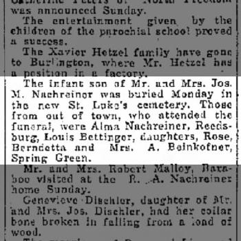 - Katherine Mary Nachreiner b. 7 Jan 1917, d. 7 Jan 1917