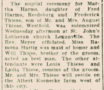 - Henry J. Thies+ b. May 1856, d. 20 Apr 1948