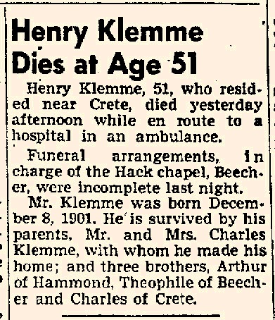 | Father* | Charles H. Klemme Sr. b. 30 Oct 1870, d. 25 Jul 1953 |