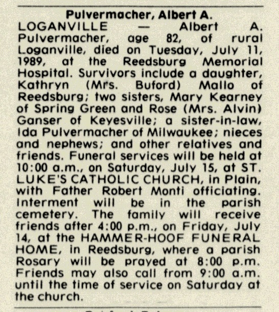 - Kathryn D. Pulvermacher b. 23 Sep 1931, d. 15 Oct 2015