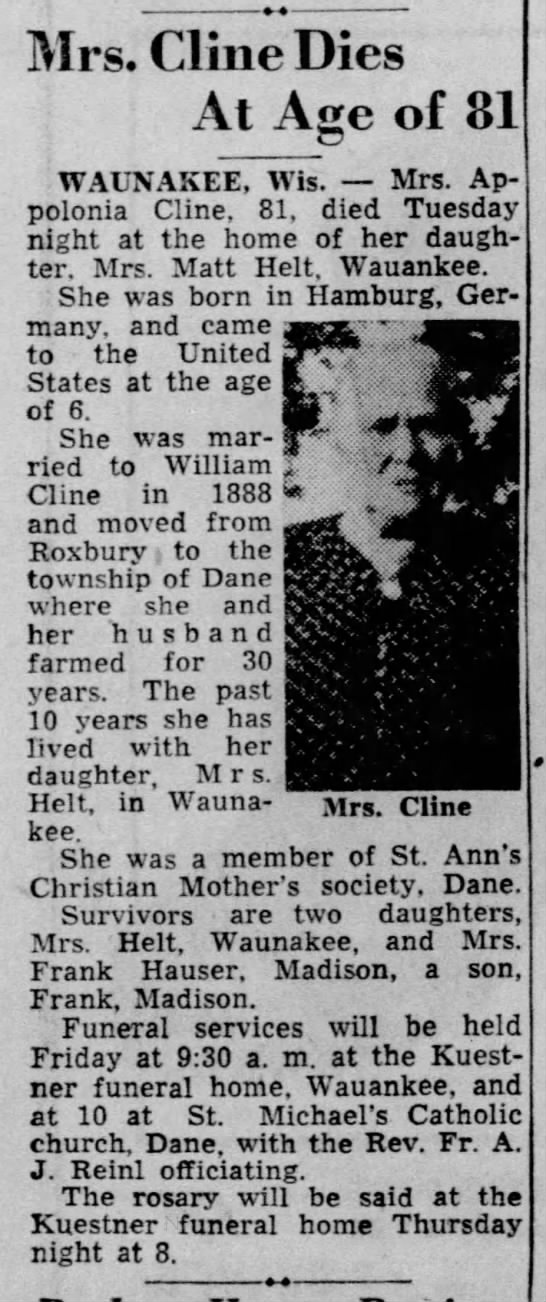 - Norbert Cline b. 20 Jan 1916, d. Mar 1984