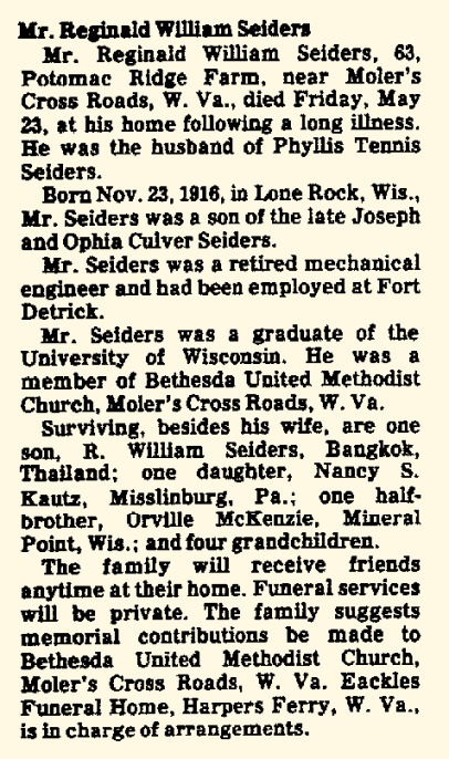 - Jack J. Seiders b. 6 Jun 1933, d. 31 Dec 1952