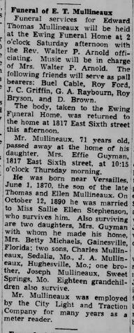 - Reverand Emmett L. Mullineaux b. 5 Aug 1910, d. 9 Aug 1990
