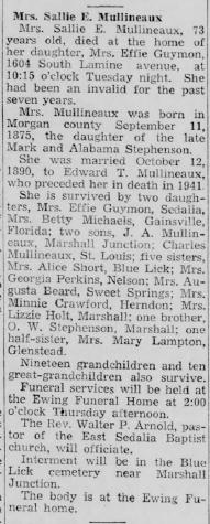 - [S357] Missouri Death Certificates, 1910 – 1955 (published), Certificate Number 2119.