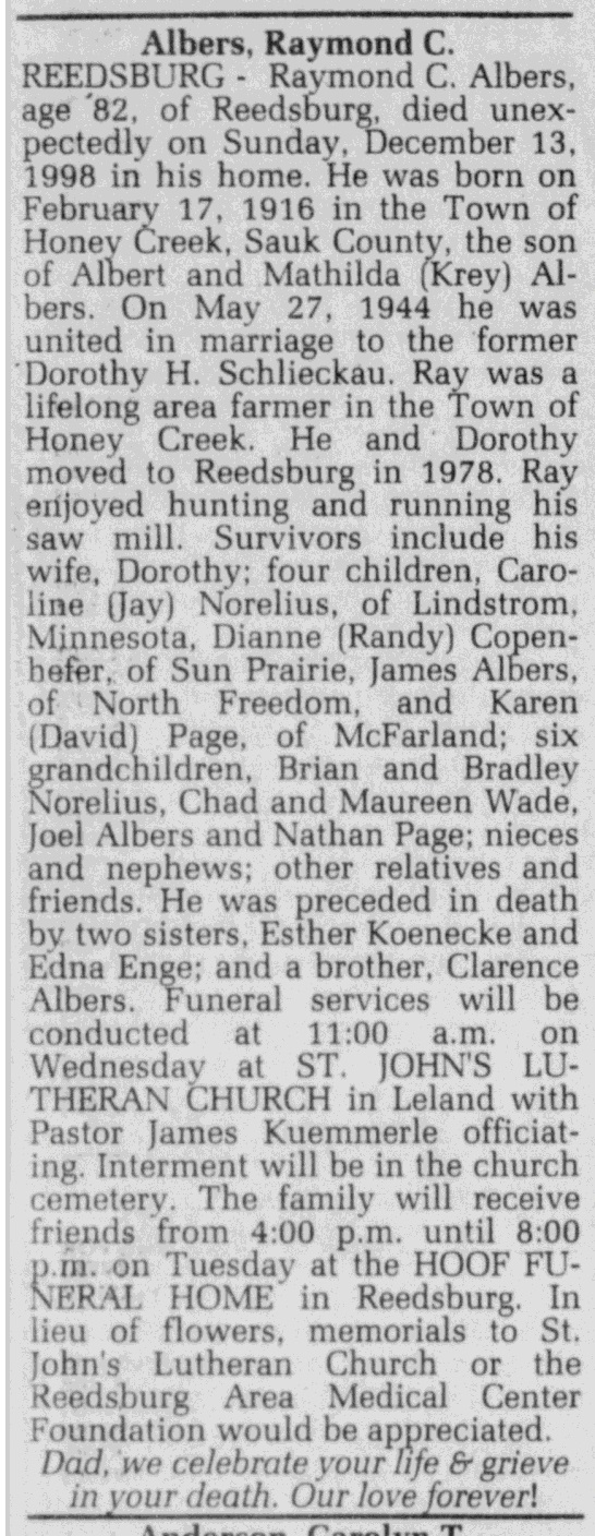 - Lawrence Raedel b. 3 Apr 1930, d. 14 Mar 2006