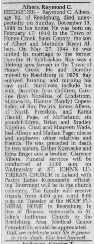 - Vernon Raedel b. 21 Oct 1939, d. 27 Mar 2015