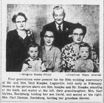 - Emma O. Koepke+ b. 1 Jan 1904, d. 3 Jan 1959