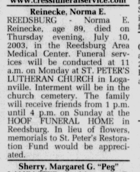 - [S250] U.S. Federal Census 1930 U.S. Federal Census, by Ancestry.com, Year: 1930; Census Place: Westfield, Sauk, Wisconsin; Roll 2609; Page: 4B; Enumeration District: 39; Image: 523.0.