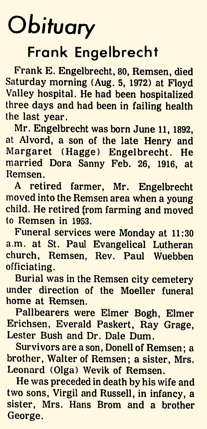 - Virgil Henry Engelbrecht b. 1916, d. 1916