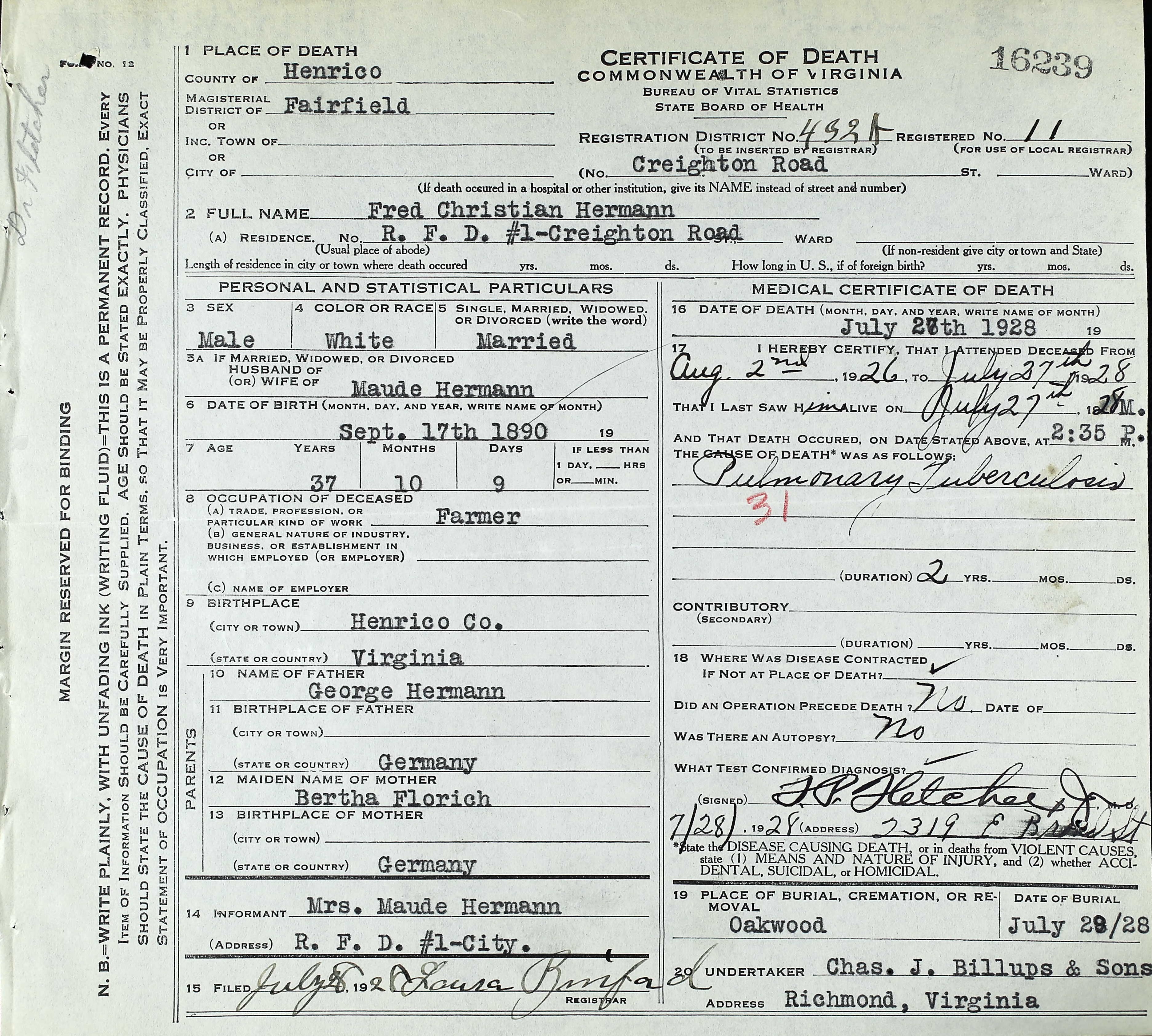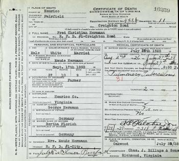 - Fred Christian Hermann b. 17 Sep 1889, d. 27 Jul 1928