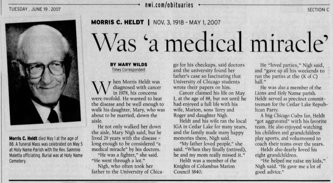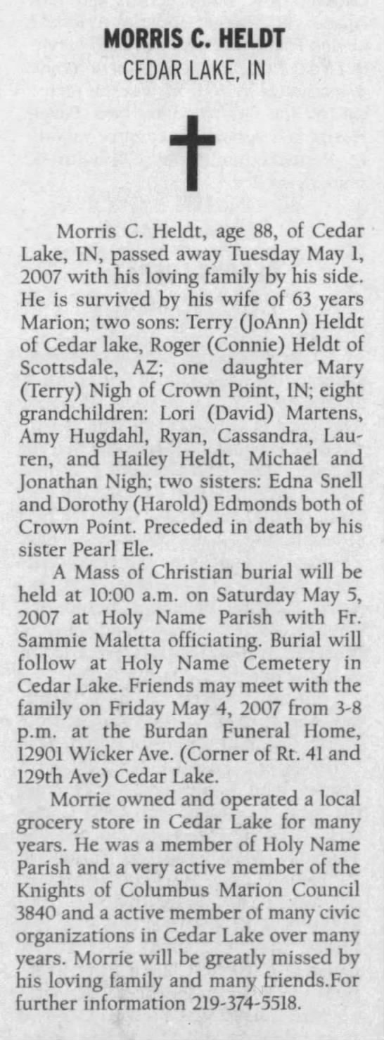 - Morris Carl Heldt+ b. 3 Nov 1918, d. 1 May 2007