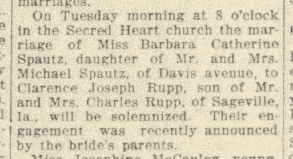 Children of Barbara Catherine Spautz and Clarence Frank Rupp