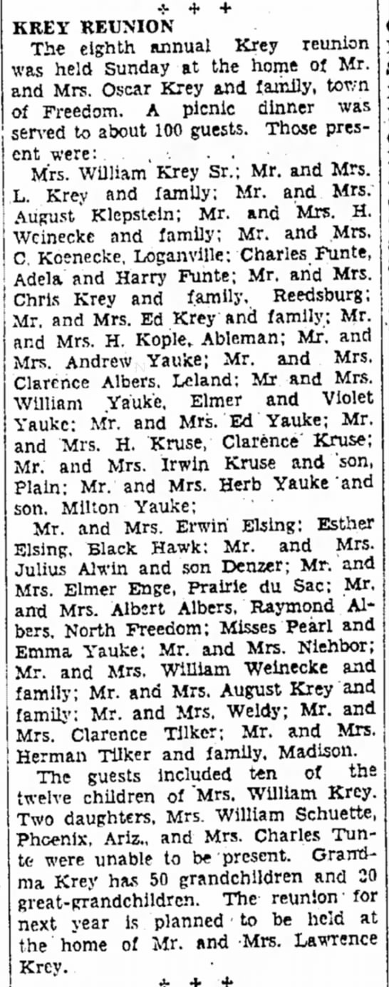 - Raymond A. Krey b. 20 Jun 1919, d. 12 Dec 2008