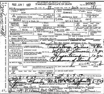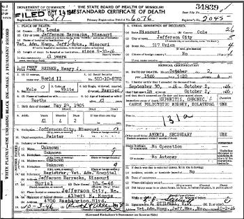 - [S357] Missouri Death Certificates, 1910 – 1955 (published).