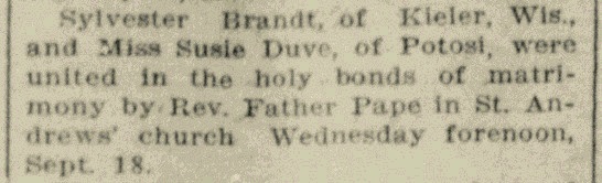 Children of Mary Susan Duve and Sylvester Joseph Brandt