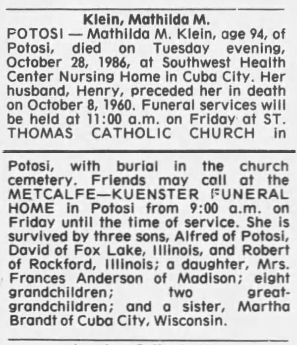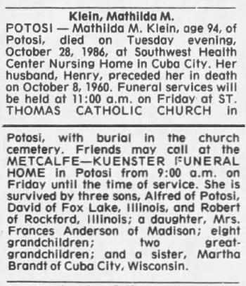 - Frances B. Klein b. 11 Dec 1915, d. 29 May 1992