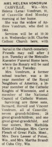 - Vincent Celestine Vondrum+ b. 7 Dec 1913, d. 27 Mar 1993