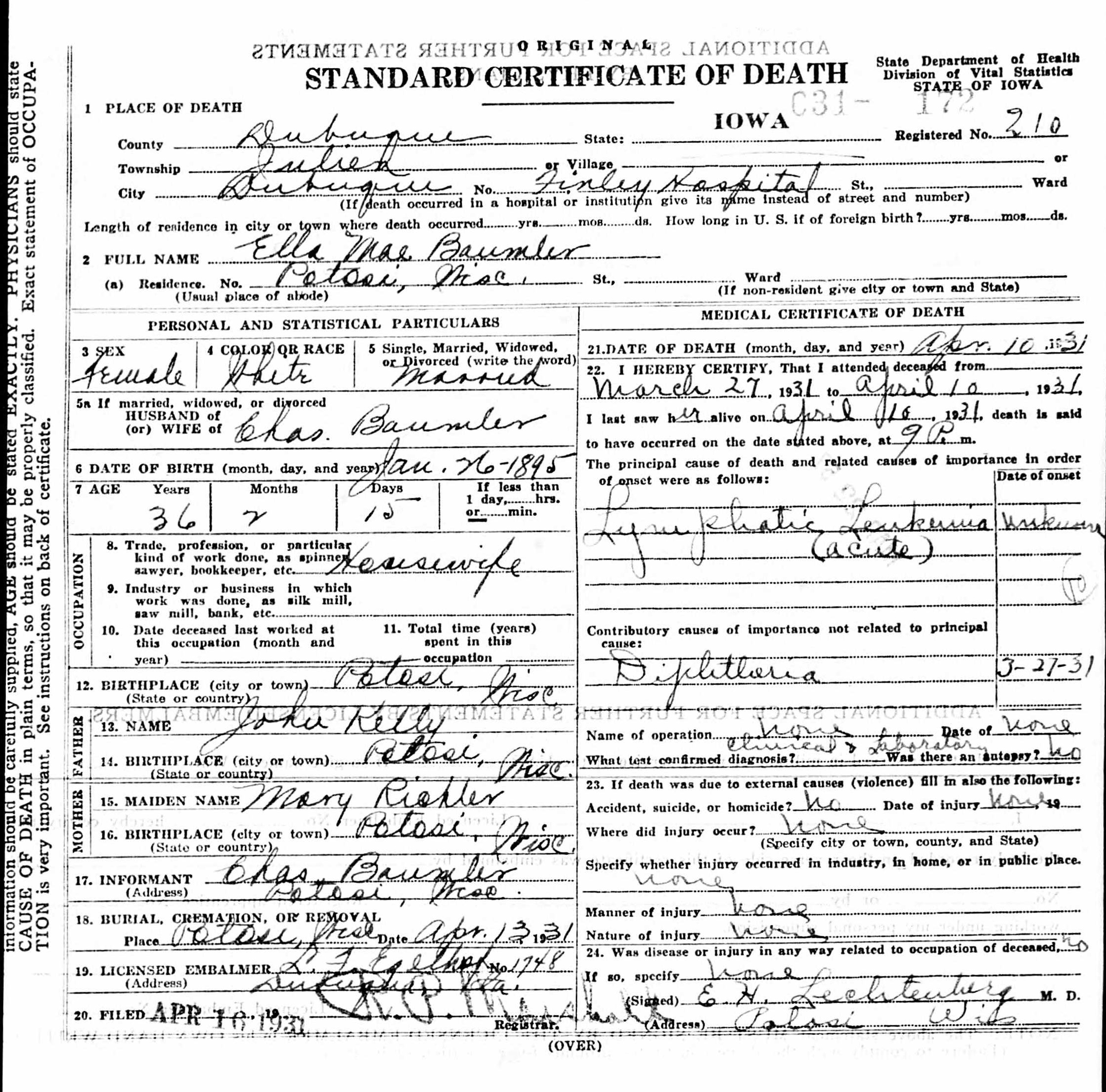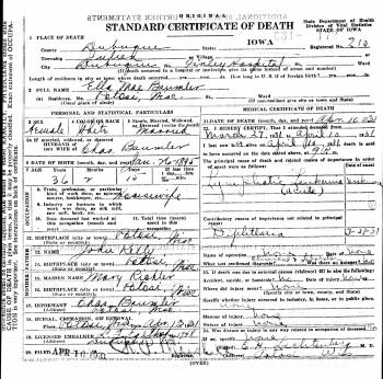 - [S243] U.S. Federal Census 1920 U.S. Federal Census, by Ancestry.com, Year: 1920; Census Place: Dubuque Ward 3, Dubuque, Iowa; Roll: T625_488; Page: 4A; Enumeration District: 132.