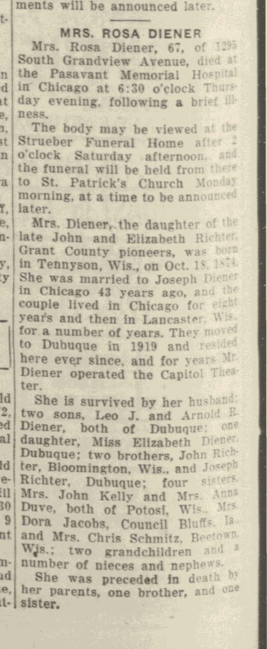 - Rosa M. Richter+ b. 18 Oct 1874, d. 18 Dec 1941