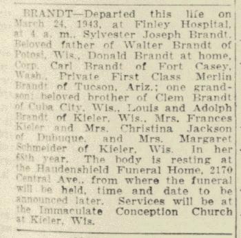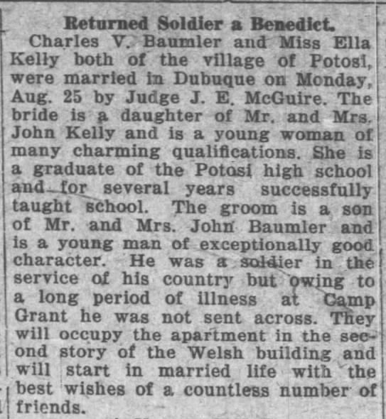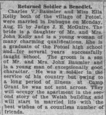 - [S243] U.S. Federal Census 1920 U.S. Federal Census, by Ancestry.com, Year: 1920; Census Place: Potosi, Grant, Wisconsin; Roll: T625_1988; Page: 5A; Enumeration District: 123; Image: 431.