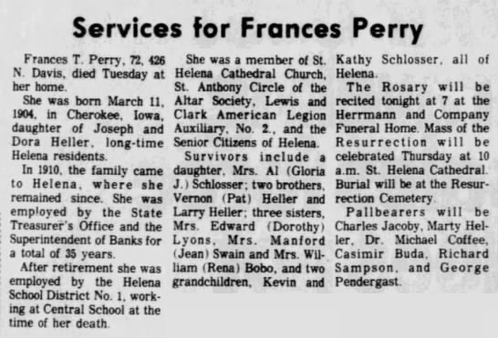 - [S250] U.S. Federal Census 1930 U.S. Federal Census, by Ancestry.com, Year: 1930; Census Place: Helena, Lewis and Clark, Montana; Roll: 1258; Page: 6A; Enumeration District: 7; Image: 124.0.