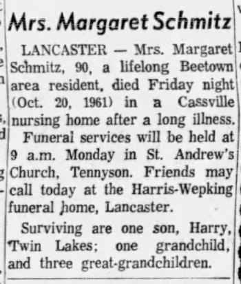 - Margaret Richter+ b. Oct 1871, d. 20 Oct 1961