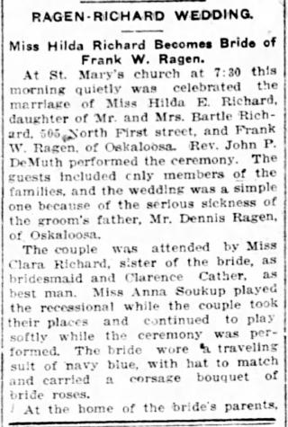 - Frank Wilbur Ragen+ b. 22 Aug 1890, d. 1964