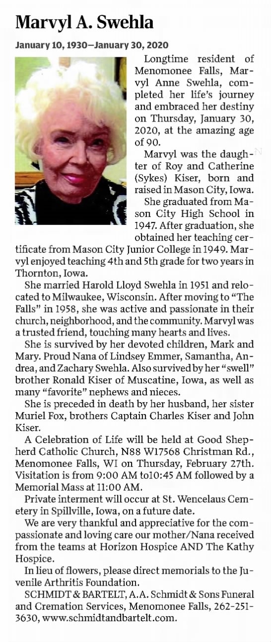 - Marvyl Anne Kiser+ b. 10 Jan 1930, d. 30 Jan 2020