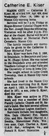 Children of Catherine Elizabeth Sykes and Roy Herbert Kiser