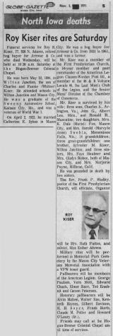 - Roy Herbert Kiser+ b. 22 May 1894, d. 3 Nov 1971