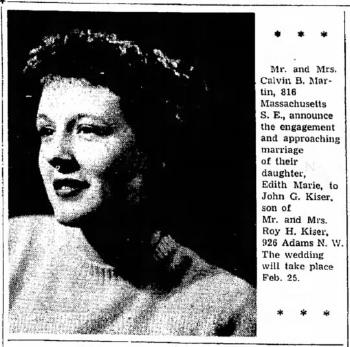 - John Gilbert Kiser b. 25 Nov 1926, d. 20 Apr 1984