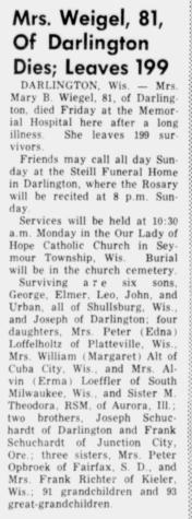 Children of Mary Barbara Schuhardt and Joseph W. Wiegel