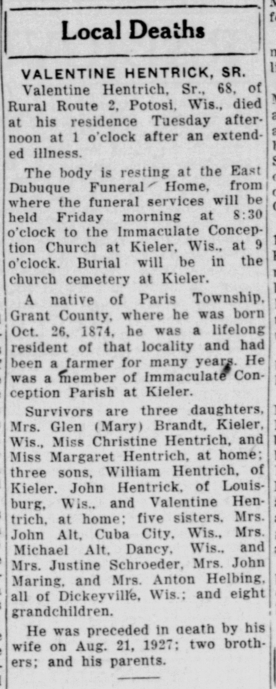 - Valentine J. Hentrich b. 1915, d. 1972