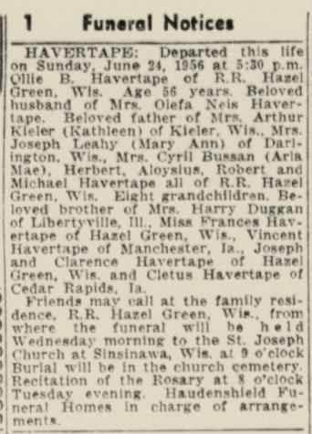 | Father* | Aloysius Havertape b. 1899, d. 24 Jun 1956 |