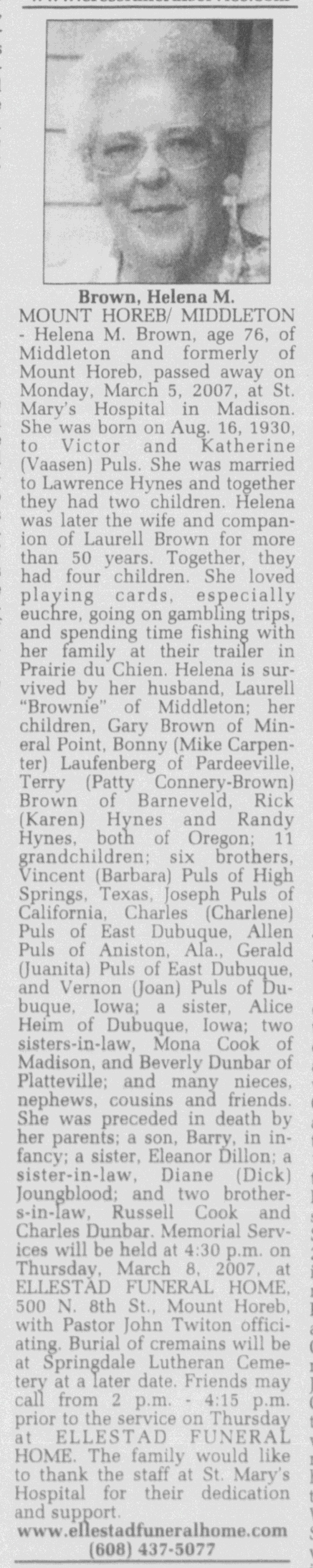 - Helena M. Puls+ b. 16 Aug 1930, d. 5 Mar 2007