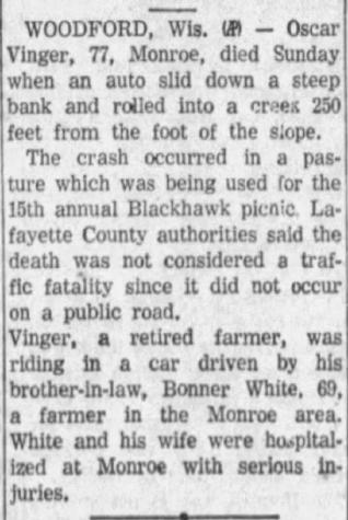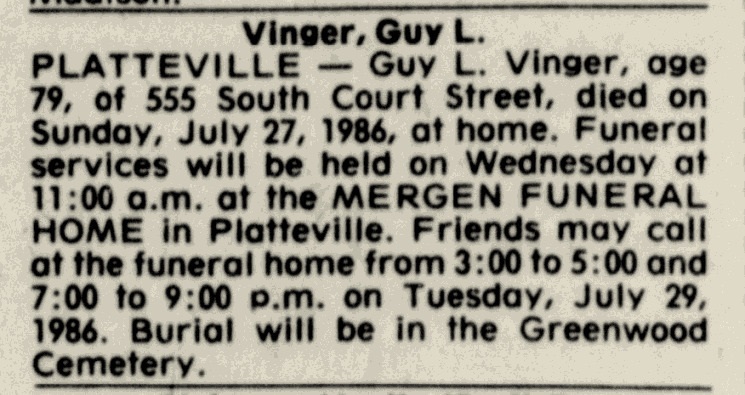 - Guy Leonard Vinger+ b. 1 May 1907, d. 27 Jul 1986