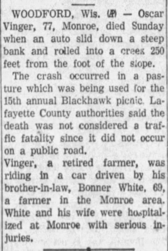 | Father* | Oscar Ever Vinger b. 27 Oct 1880, d. 8 Jul 1956 |