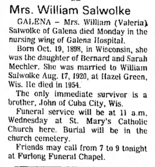 | Mother* | Cecelia Brandt b. 8 Apr 1906, d. 18 Jul 1941 |