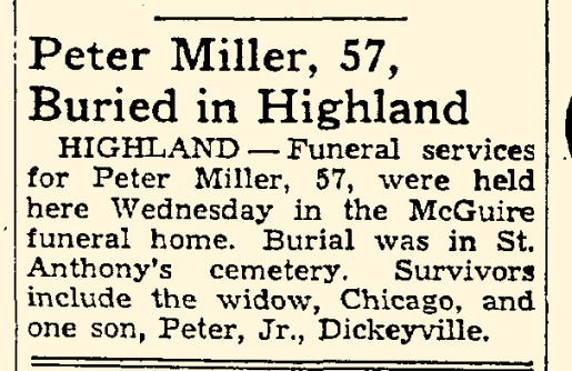 | Father* | Peter Simon Miller Jr. b. Feb 1882, d. Feb 1939 |