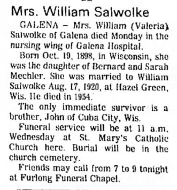- [S243] U.S. Federal Census 1920 U.S. Federal Census, by Ancestry.com, Year: 1920; Census Place: Smelser, Grant, Wisconsin; Roll: T625_1987; Page: 1A; Enumeration District: 98; Image: 1028.