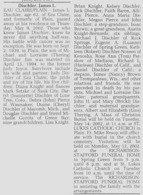 | Father* | Michael Simon Dischler Sr. b. 2 Feb 1913, d. 14 Dec 1989 |