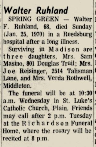 - Lloyd Ruhland b. 7 Jul 1938, d. 19 Aug 2018