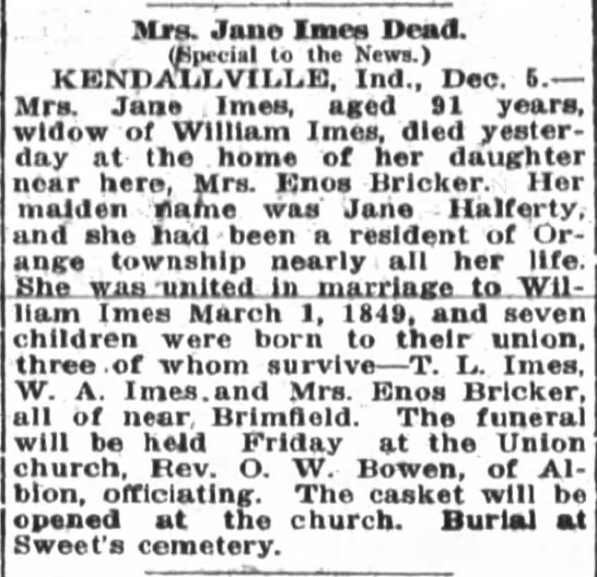 Children of Jane Halferty and William Imes