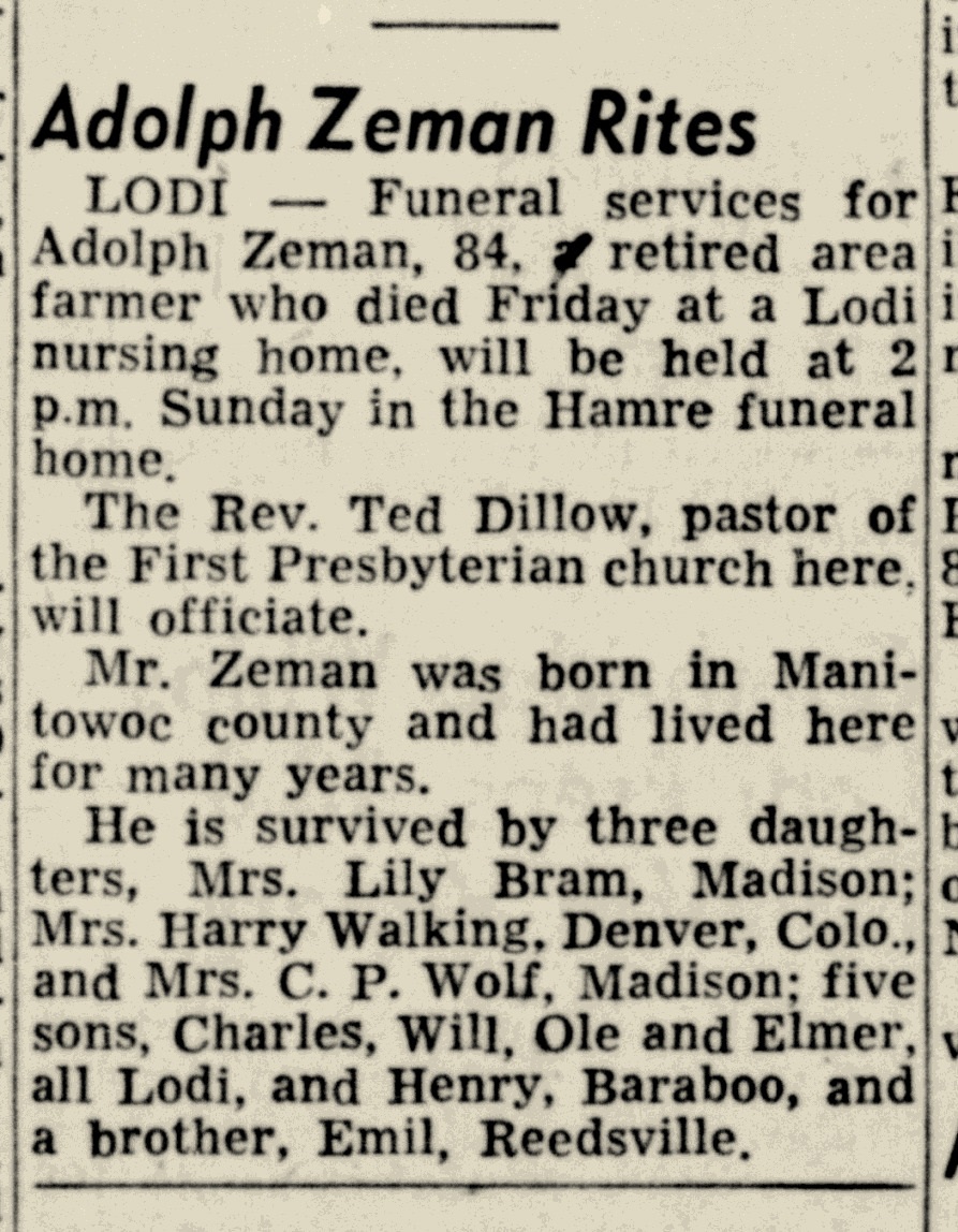 | Father* | Adolph H. Zeman b. Nov 1868, d. Oct 1952 |