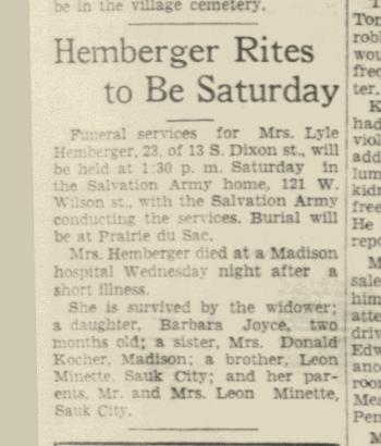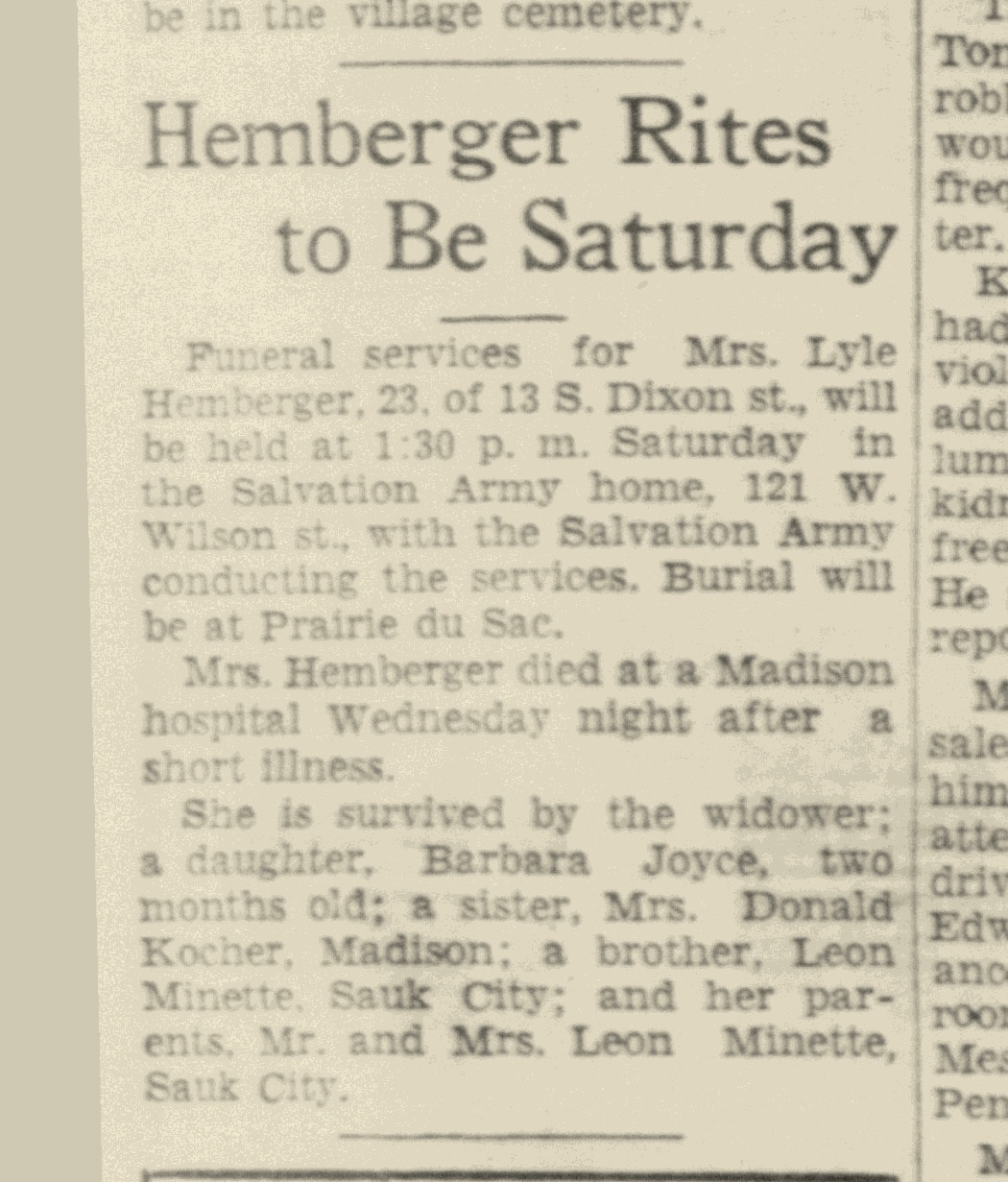 - LeRoy Hemberger b. 1925, d. 1934