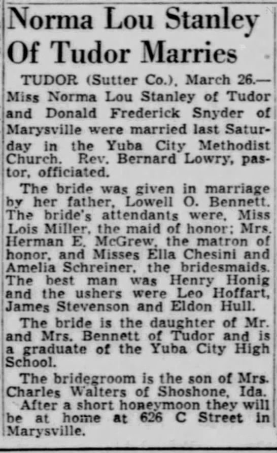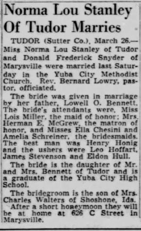 - Norma Lou Stanley b. 15 Jan 1930, d. 27 Oct 2000