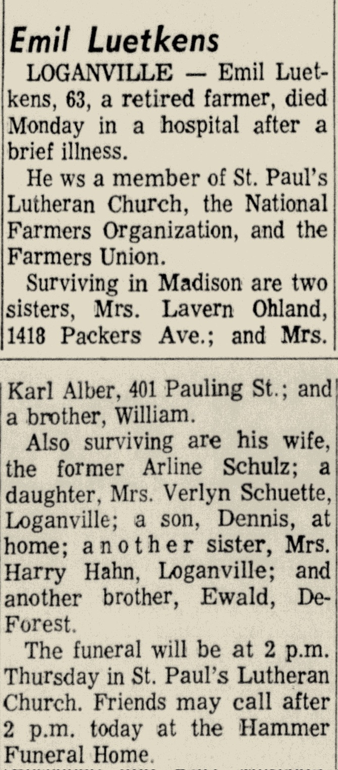 Child of Arline E. Schulz and Emil H. W. Luetkens