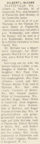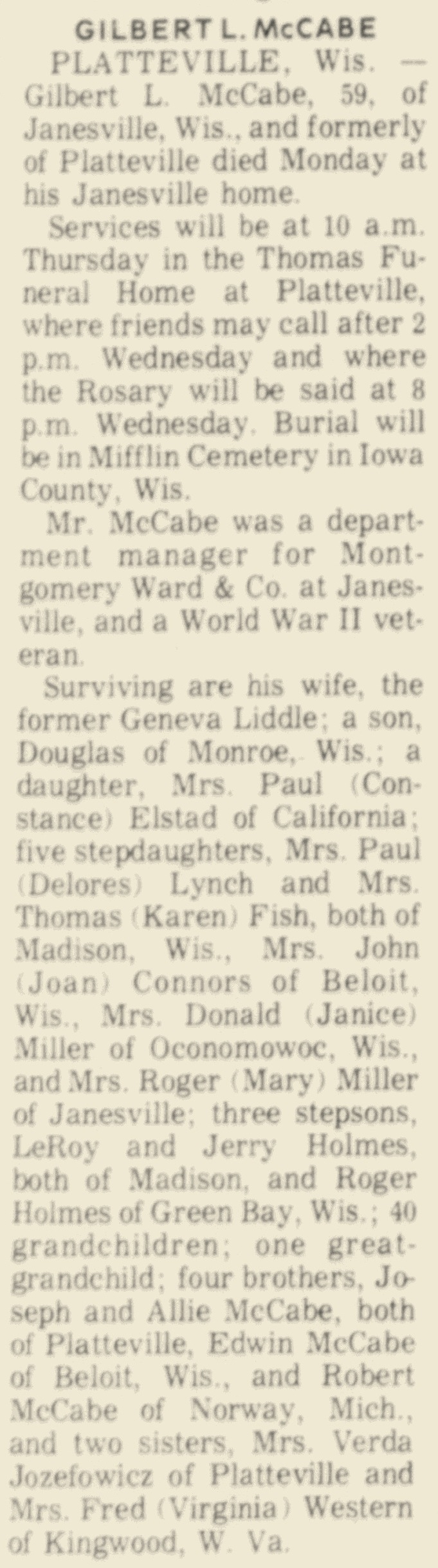 - Gilbert L. McCabe b. c 1915, d. Jan 1974