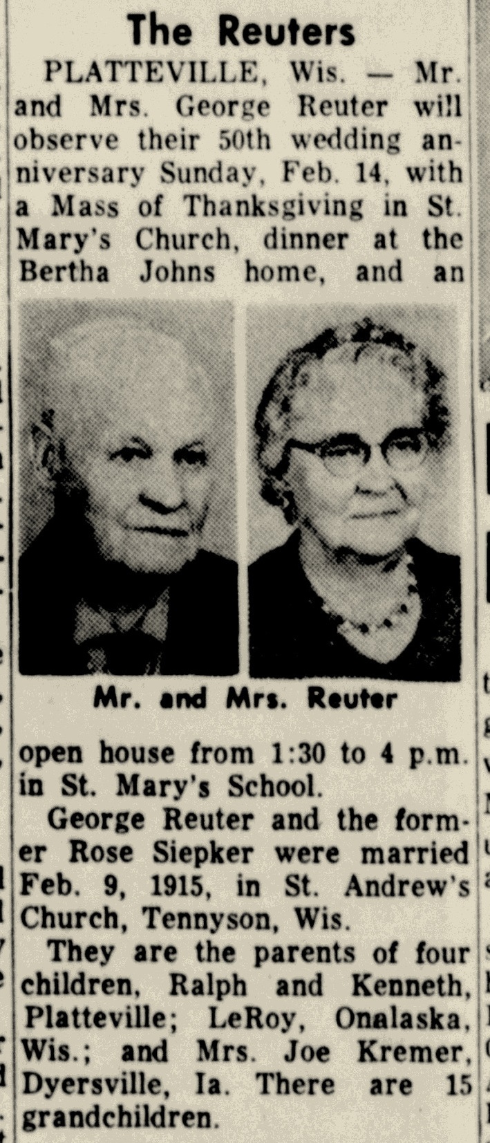 - George Joseph Reuter b. 28 Oct 1887, d. May 1968