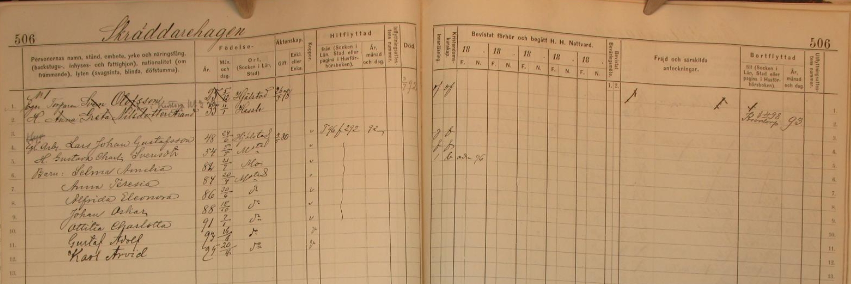 Children of Lars Johan Gustafsson and Gustava Charlotta Svensdotter